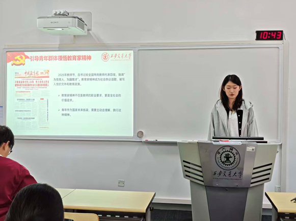 安锐与大家分享了教育家精神的思想内涵。从“为国铸重器”的王锡凡教授,到扎根讲台、启智润心的张未展教授,一代代西交大人将总书记提出的“心有大我、至诚报国的理想信念”等六个方面教育家精神,与“胸怀大局、无私奉献”的西迁精神融为一体。他们以实际行动诠释了弘扬教育家精神正是建设教育强国的核心要义。如今,这股精神力量已传递到青年一代手中,无数优秀学子在科研攻关、志愿服务中展现出强烈的教育情怀与使命担当,为投身强国伟业注入了澎湃的青春动能。