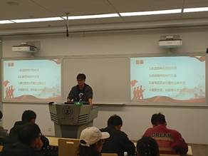 在团支部组织生活环节中,曹瑞同志以“弘扬伟大抗战精神,锤炼本领团结奋斗”为主题进行宣讲。他从“九一八”事变切入,带领全体团员系统回顾了中国人民十四年艰苦卓绝的抗战历程。从七七事变到湘西会战,从白山黑水到太行山麓,一幕幕历史画卷被重新展开。曹瑞同志通过讲述杨靖宇、赵一曼、狼牙山五壮士等英雄的感人事迹,生动诠释了伟大抗战精神中蕴含的爱国情怀、民族气节与不屈信念。