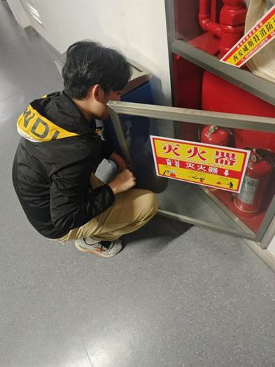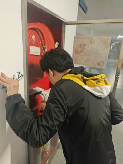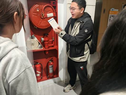 为确保巡查工作专业有效,活动组织者进行了周密准备。负责人现场演示了巡查要点,包括如何检查灭火器压力表是否正常、消防设施是否完好并是否月检、电井门是否关闭、以及公共设施损坏情况等。通过生动演示,同学们快速掌握了巡查技能,为后续行动奠定了坚实基础。培训结束后,13名成员被分为6个小组,每组负责巡查3号巨构楼的一个楼层。 巡查工作围绕消防装置、公共设施、环境卫生等重点内容展开。各小组分工明确,任务清晰,确保了巡查工作的高效进行。