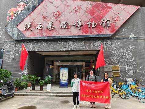 在博物馆的外面,门口飘扬着鲜艳的旗帜,几位同学在此合影留念,洋溢着对秦腔文化的期待,走进陕西秦腔博物馆,仿佛踏入了秦腔艺术的时光隧道。